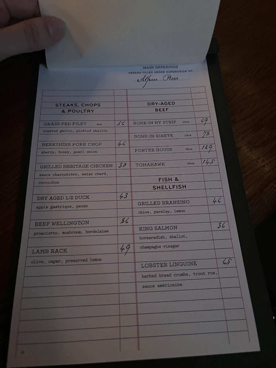 Alpen Rose offers a thoughtfully crafted menu that blends classic steakhouse favorites with refined, alpine-inspired dishes. The menu invites diners to savor hearty, well-executed plates like the rich Porterhouse steak or the Individual Beef Wellington, alongside distinctive small plates such as Bone Marrow Toast or Tuna Carpaccio. This balance of familiar and unique flavors complements the restaurant’s cozy, chalet-style atmosphere, creating a dining experience that feels both comforting and special.