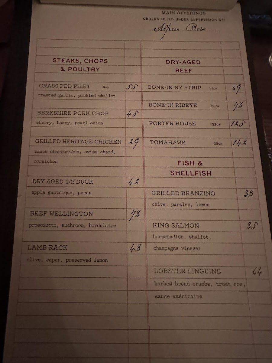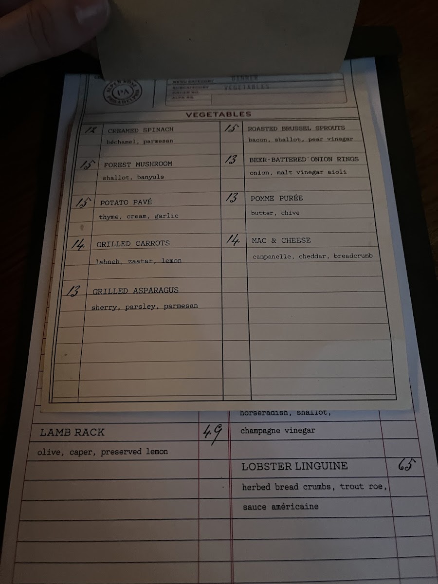 Guests often enjoy these dishes as part of an intimate dinner or a celebratory night out, with starters like Caesar Salad or Shrimp Cocktail warming up the palate before diving into rich mains. Comfort sides like Mac & Cheese and Creamed Spinach add familiar, satisfying touches, while creative desserts such as Pineapple Upside Down Alaska and Mint Chocolate Chip Ice Cream provide a sweet close to the meal.